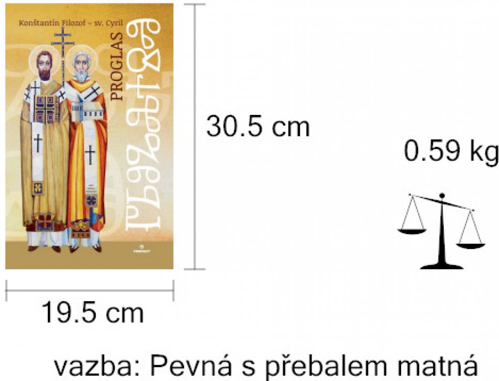 Autor : Edita a Johana Ambrušovi, Konštatýn Filozof sv. Cyril, Popis : Proglas je oslavou písma a slova, ktorá nemá obdobu v európskej poézii. Napísal ho v deviatom storočí staroslovienskym jazykom Konštantín Filozof - sv. Cyril. Na území Veľkej Moravy, kam smerovala v roku 863 misia sv. Cyrila a sv. Metoda, pripadla Konštantínovi Filozofovi úloha vytvoriť písmo a do staroslovienskeho jazyka preložiť cirkevné knihy. Vtedy napísal aj Proglas ako predslov k evanjeliám. Reprezentatívne vydanie tohto pozoruhodného diela obsahuje Proglas v prebásnení Ľubomírom Feldekom a v hlaholike - v prvom staroslovienskom písme. Dielo je ilustrované ikonami Edity Ambrušovej a letristickými grafikami Johany Ambrušovej. Proglas je jedinečné dielo európskeho významu, preto vychádza v slovenčine, v hlaholike a v angličtine súčasne. Vďaka tomuto vydaniu má aj široká verejnosť možnosť vidieť až ornamentálnu krásu hlaholského písma, ktoré pre nás solúnski bratia vytvorili.