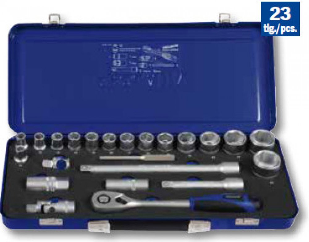 23 dílů přehledně uloženo ve vysoce hodnotné dvoubarevné PROForm - výplni a v odolném kovovém kufříku
