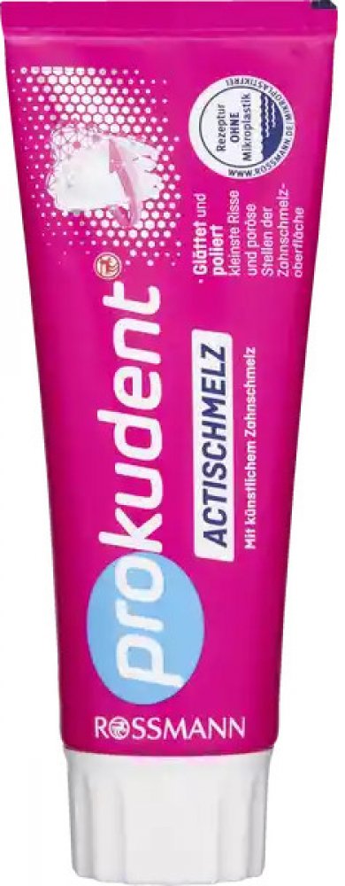 Konzumace kyselých potravin a nápojů může vést k předčasné degradaci zubní skloviny a zvýšené citlivosti na bolest.Zubní pasta Prokudent Acti vyhlazuje a leští nejmenší trhliny a pórovité plochy povrchu zubní skloviny umělým zubním emailem, aktivně vytvrzuje a remineralizuje zubní sklovinu pomocí fluoridu sodného.Chrání také před zubním kazem a snižuje citlivost na bolest zubů a exponovaných zubních krků. - Tento recept je 100 bez mikroplastikKontaktní údajeIsernhägener Straße 16, 30938 Burgwedel,Složení: Aqua, hydroxyapatit, hydratovaný oxid křemičitý, sorbitol, propylenglykol, tetrofosforečnan draselný, sodná sůl C14-16 olefin sulfonátu, aroma, celulózová guma, pyrofosforečnan disodný, fluorid sodný, kokoylisethionát sodný, sacharin sodný, CI 77891. Obsahuje fluorid sodný (1 490 ppm F) .