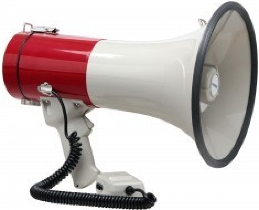Megafon s výkonem 25 W (RMS) a dosahem 600 až 1000 m. Nechybí funkce jako siréna, včetně ručního mikrofonu a popruhu.