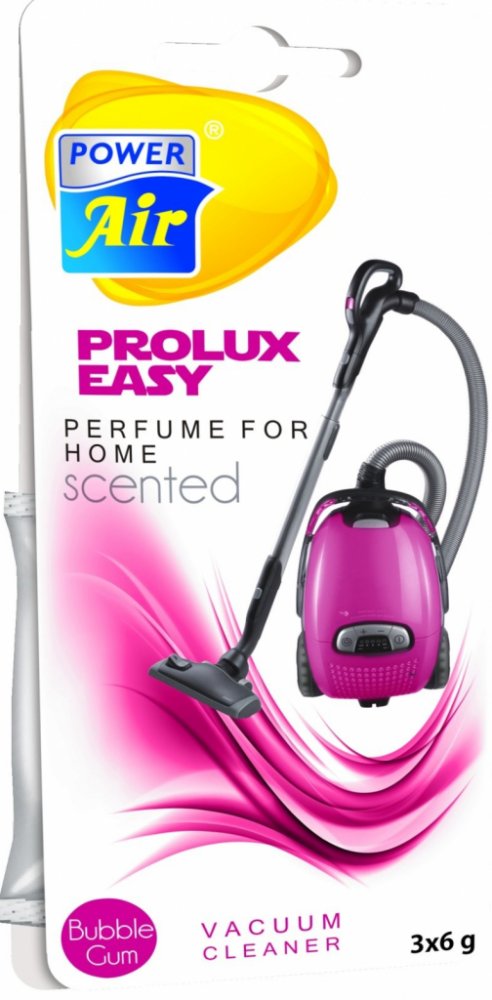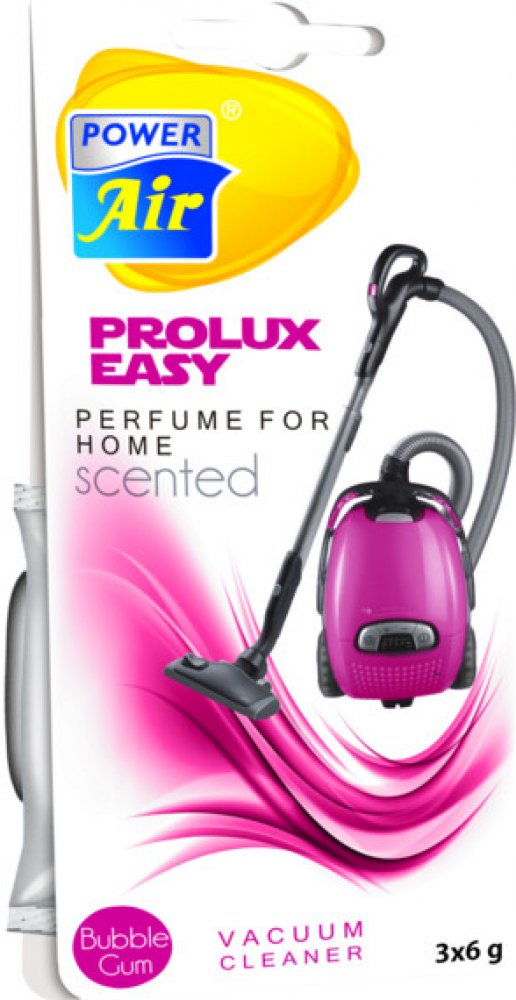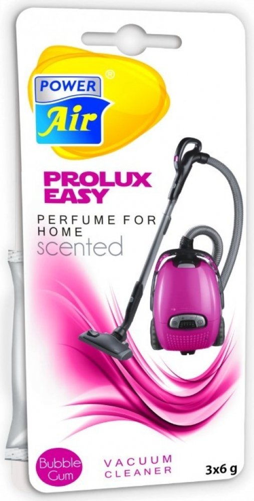 POWER AIR Prolux Easy jsou vonné sáčky do vysavačů. Díky těmto sáčkům dokážete snadno provonět vysávané prostory - byty, domy nebo kanceláře. Současně dochází k eliminaci pachů. Prolux Easy je dostupný ve čtyřech vůních: Vanilla, Tropical Fruits, Extra Fresh a Bubble Gum. V každém balení naleznete tři 6g sáčky. Návod k použití: Vyjměte sáček z obalu a vložte do sáčku vysavače. Textilní sáček neotvírejte. Upozornění: Nepokládejte na plasty a lakované povrchy. Pouze pro vysavače z klasickou filtrací. Bez