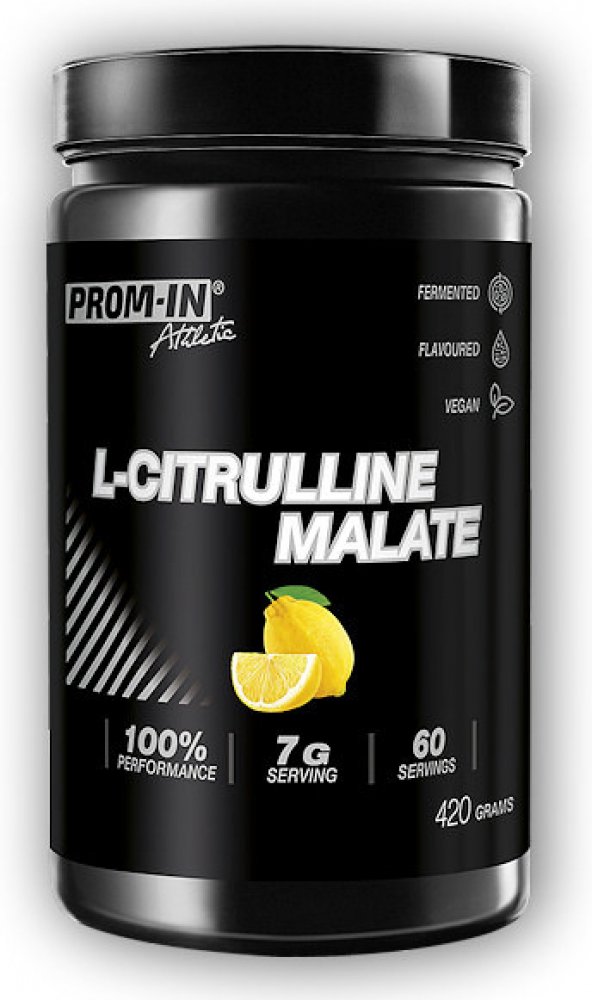 PROM-IN Citrulline Malate 420 g je doplněk stravy obsahující L-citrulin malát v poměru 2:1 s osvěžující citronovou příchutí. Tento produkt staví na vědeckých základech a je navržen tak, aby podpořil sportovní výkon, regeneraci a zdraví oběhového systému. Díky jednoduchému složení je vhodný i pro vegany.