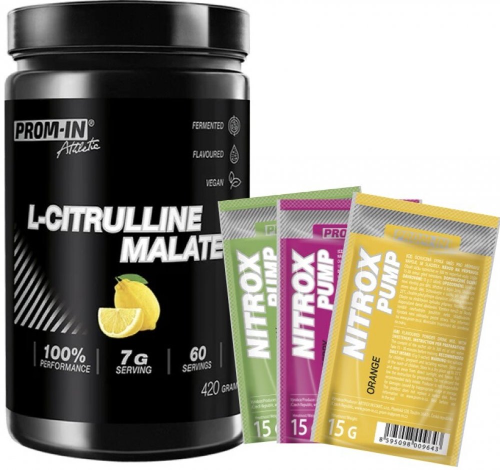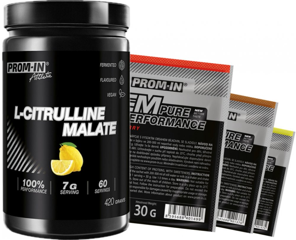 PROM-IN Citrulline Malate 420 g je doplněk stravy obsahující L-citrulin malát v poměru 2:1 s osvěžující citronovou příchutí. Tento produkt staví na vědeckých základech a je navržen tak, aby podpořil sportovní výkon, regeneraci a zdraví oběhového ...