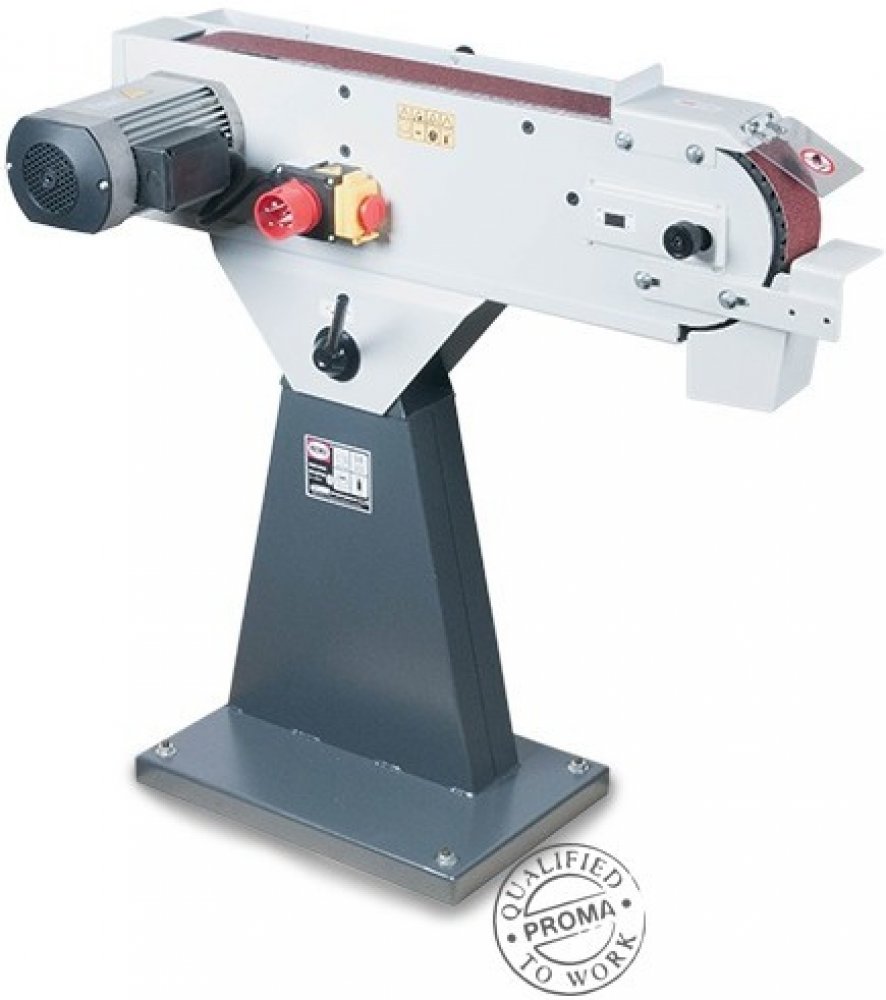 3000 W 75 mm 66 kg Proma pásové 75 x 2000 mm 75 mm 3000 W 400 V profesionální elektrické na dřevo a kovy pro silné odstranění materiálu pro stacionární použití 700 × 490 × 1130 mm s vyššími vibracemi a hlučností