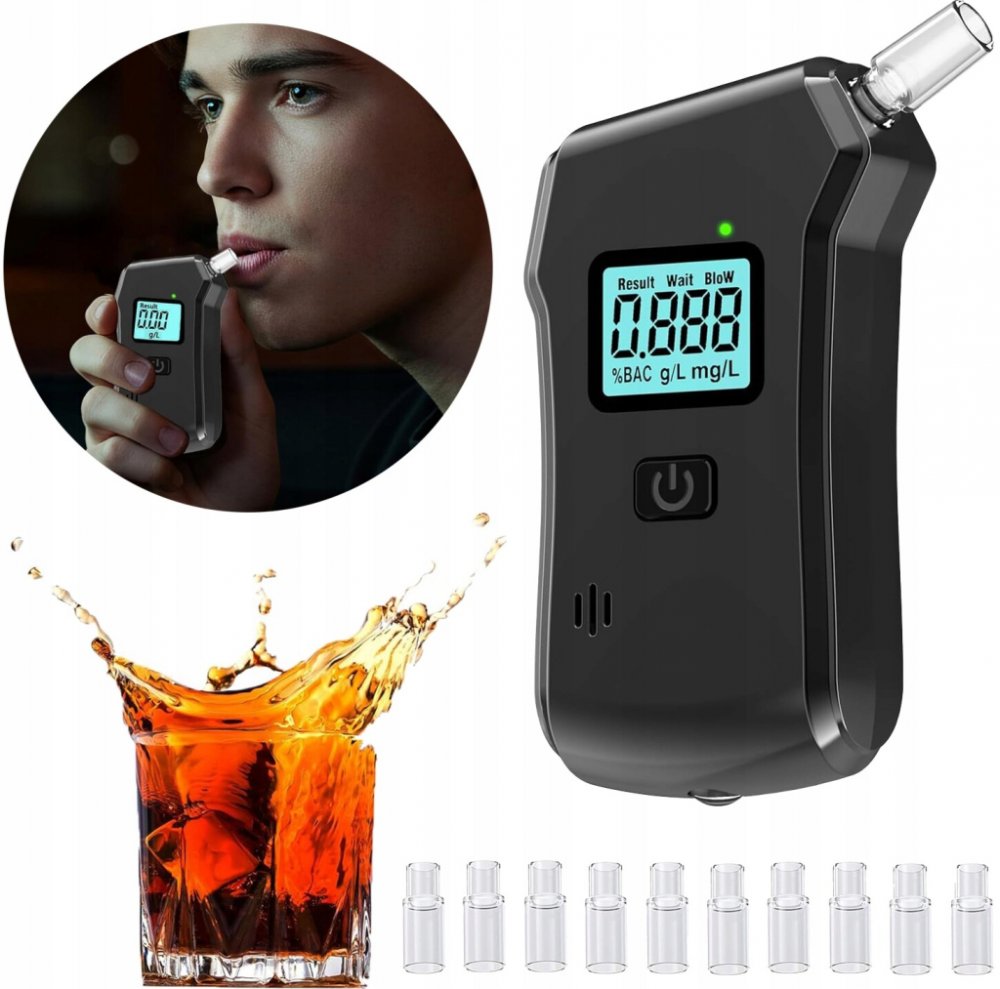 Alkomat má pevný náustek. Navíc v balení získáte: