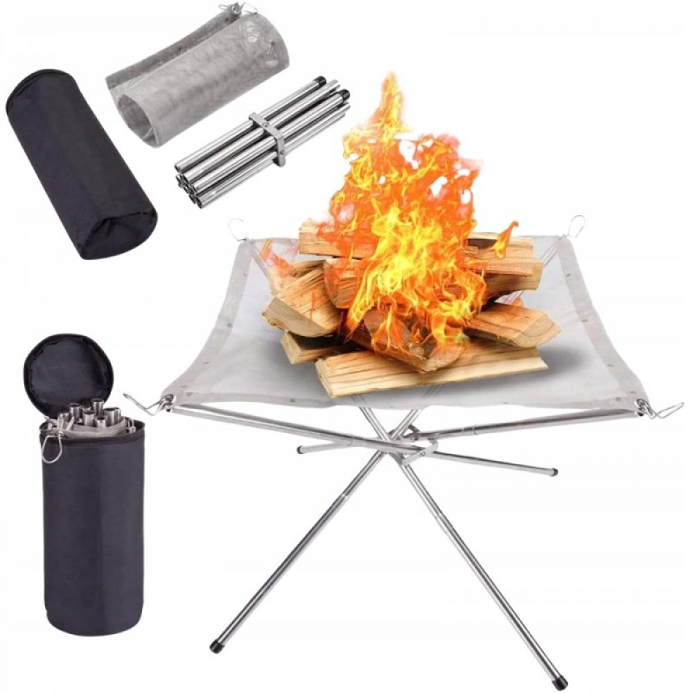 Skládací ohniště můžete použít všude tam, kde je klasické rozdělávání ohně problematické, nebo nechcete poničit podklad. Nejen, že je šetrné ke svému okolí, ale mnohem lépe přivádí vzduch, díky ocelové sítí. Mřížka stojanu je vyrobena z unikátní slitiny oceli, díky které odolává velmi vysokým teplotám. Pletivo má velmi malá oka, aby popel nepadal na zem.Stojan je skládací, zabere velmi málo místa a lze jej snadno vzít s sebou na jakýkoli výlet.Rozměry: Strana čtvercové sítě: 56 cm Výška stojanu: 43 cm Délka složeného stojanu: 26 cm