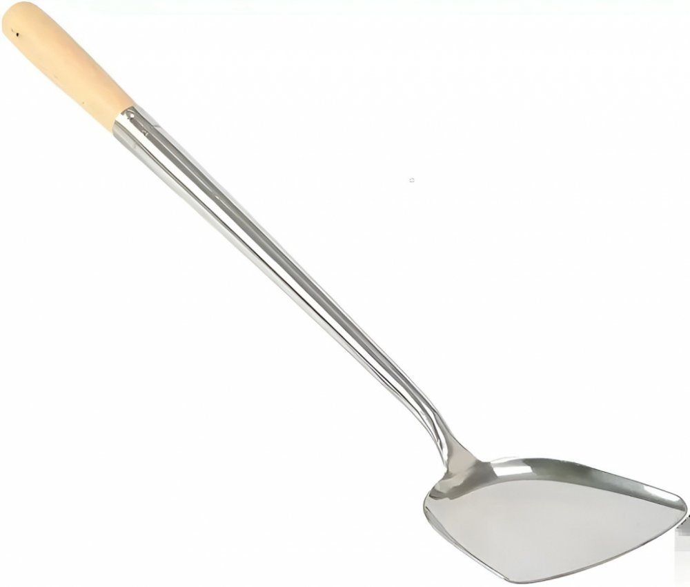 Nepostradatelný pomocník každého asijského kuchaře. Lopatka je vhodná pro míchání a další manipulaci s připravovaným pokrmem v pánvi wok.Specifikace: Celková délka: 50 cm Šířka lopaty: 11 cm Materiál: nerezová ocel Dřevěná rukojeť