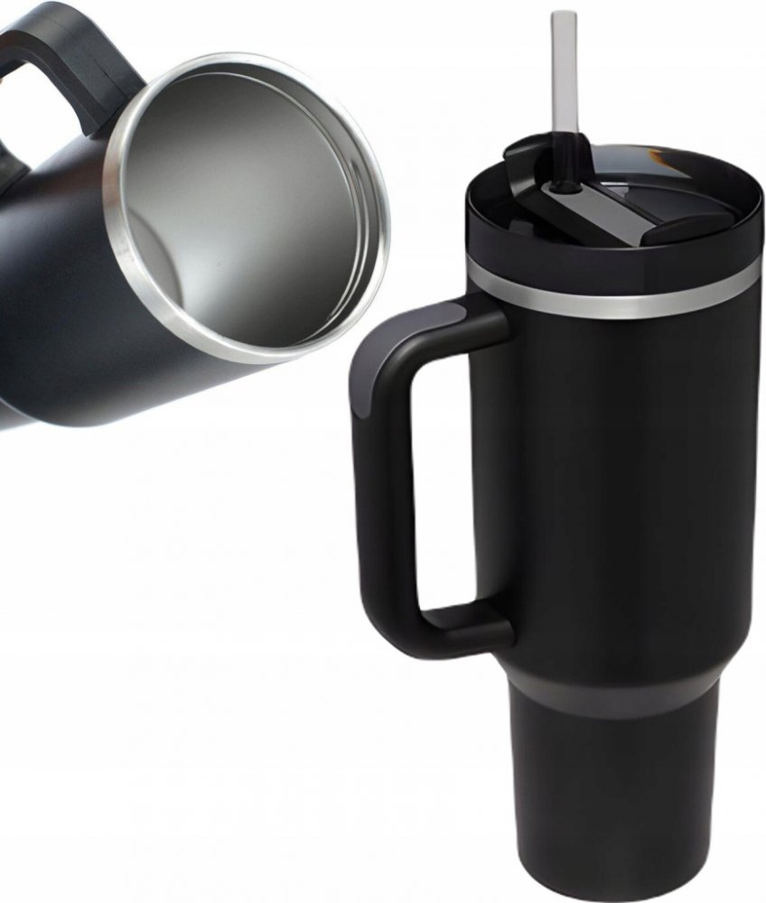 Pronett XJ5557 Termohrnek s uchem a brčkem nerez 1000 ml černý