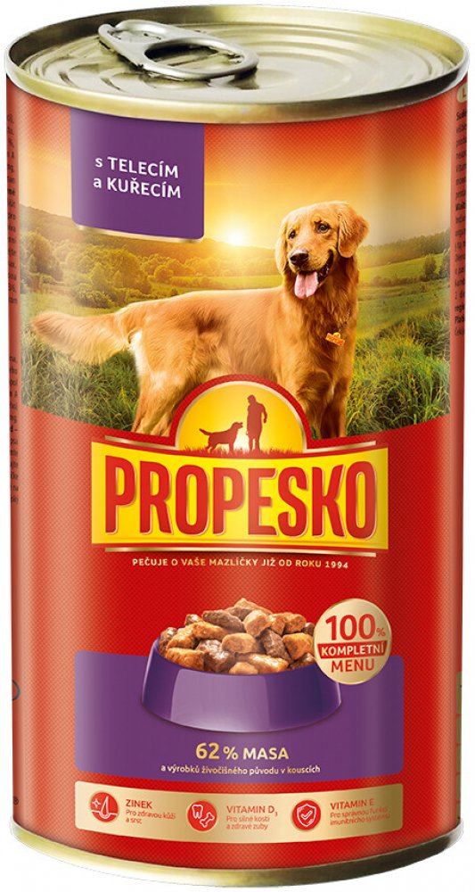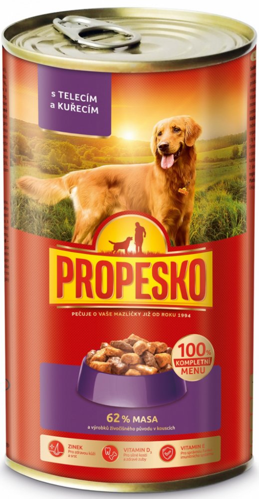 Propesko Adult telecí a kuřecí v omáčce 1240 g