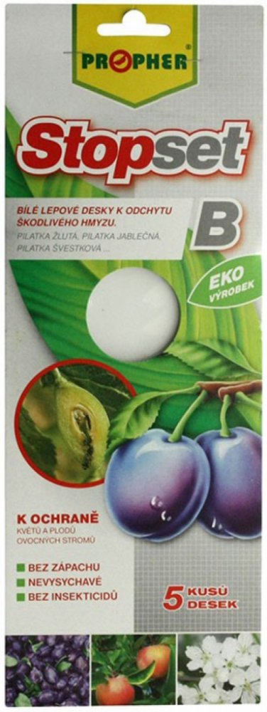 Bílé lepové desky slouží k odchytu škůdců: pilatka žlutá, pilatka jablečná, pilatka švestková. Zvláště pilatka švestková způsobuje značné škody na kvetoucích švestkách. Její housenky vyžírají části květů a způsobují jejich opadávání. Jedna housenka poškodí i několik květů. Pilatka jablečná poškozuje mladé plody žírem. Lapače rozvěste...