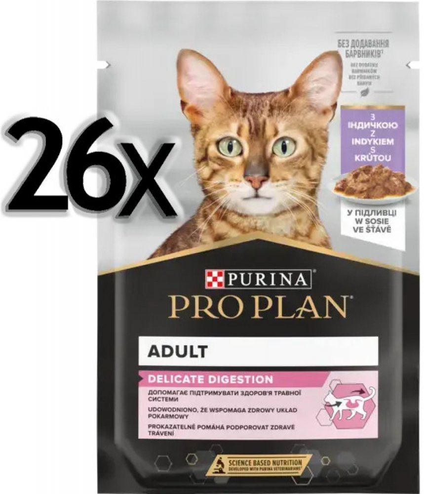 Každodenní vitalitu a dlouhotrvající zdraví získá vaše kočka díky kapsičkám ze šťavnatého krůtího masa. Kapsička obsahuje veškeré živiny, které kočka potřebuje. Krmivo s měkkými kousky krůtího masa 4 % v sobě kombinuje pečlivě vybrané suroviny, které kočce poskytnou potřebnou výživu i lahodnou chuť. Krmivo s obsahem probiotik pro podporu trávicího systému. Kvalitní kapsičky plné kousků masa ve šťávě obsahují omega mastné kyseliny DHA a EPA pro zdravou kůži a lesklou srst. Složení: Maso a vedlejší produkty živočišného původu (krůtí maso 27%), minerální látky, oleje a tuky, vedlejší produkty rostlinného původu. Analytické složky: Bílkoviny 11,5%, tuk 8,1%, popel 3,2%, vláknina 0,4%, vlhkost 75,0 %, kyselina linolová 1,4% Balení 26 kusů kapsiček.