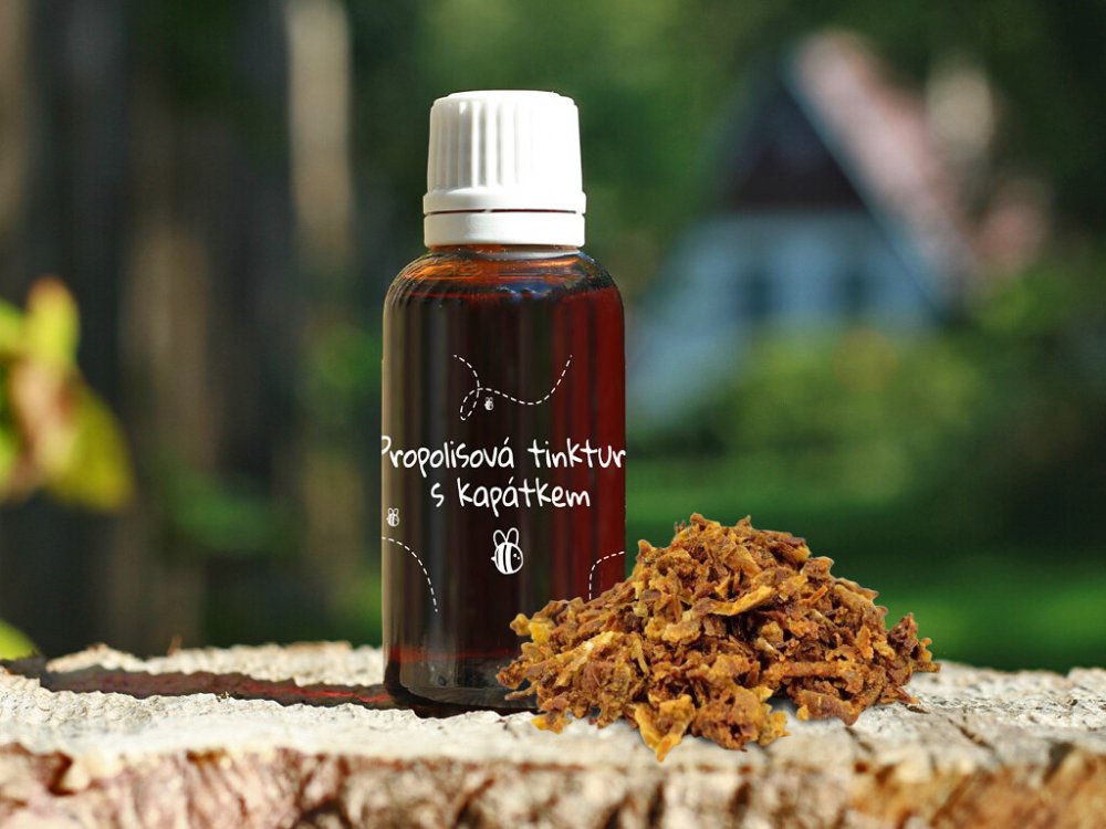 Propolis, neboli přírodní pryskyřice, je látka, kterou včely používají na čištění úlu a umí s ním zabránit růstu infekcí, bakterií a plísní. Kapky s obsahem účinných antimikrobiálních látek lze použít k lokální, bodové aplikaci na kůži nebo v dutině ústní. Při aplikaci na kůži působí hojivě. Kapky používáme na drobná poranění, ale osvědčí se například i při léčbě akné a hojení jizev po něm.