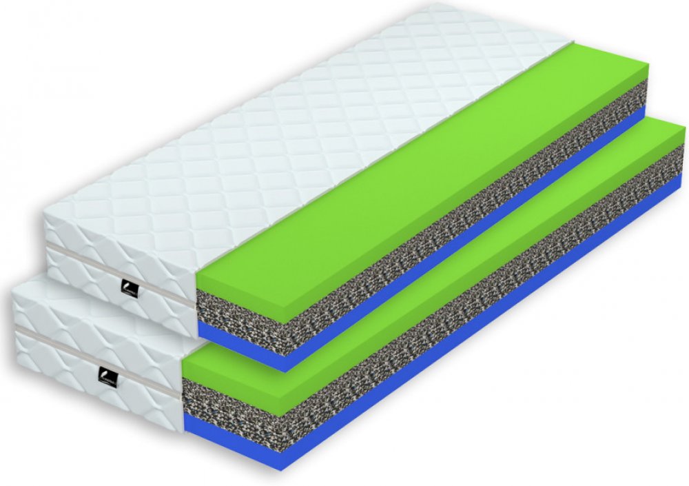 Tato atraktivní ortopedická matrace je ve všech směrech extrémní, jak svou příjemnou tuhostí H3-H5 tak svou nosnosti až 185 kg na lůžko. Další extrém, její dlouha životnost. Zajištěna díky středu matrace jenž má 5 cm a je vyroben z tlakově pojené RE pěny o vysoké objemové hmotnosti...