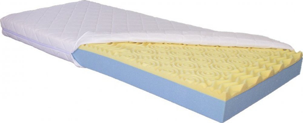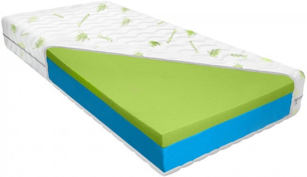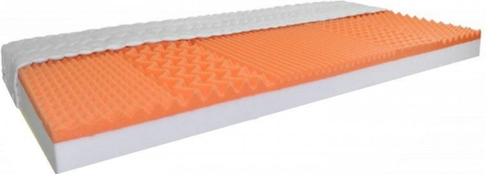 Luxusní sendvičová zdravotní ortopedická matrace z vysoce kvalitní elastické studené pěny v kombinaci s línou paměťovou pěnou o síle 5 cm. Líná pěna je významným ortopedickým prvkem zajišťující fyziologické zónování, které zcela nahrazuje fyzické ergonomické zónování. Tento materiál je termoelastický a reaguje na tělesnou teplotu kdy exponovaná místa klesnou níže a dokonale se tak přizpůsobuje konturám anatomie lidského těla. Ložná plocha matrace ze strany líné paměťové pěny je měkčí označena jako H2 a z druhé strany studené pěny je tuhost označna jako H3. Líná paměťová pěna Vám pomuže k uvolnění svalstva a relaxuci organismu při nízkém tlaku vůči tělu. Spící si tak může zvolit měkčí nebo tvrdší stranu pouhým otočením matrace. Zásluhou této konstrukce si zachovává matrace vynikající ortopedické vlastnosti. Viscoelastická pěna vyniká výraznou prodyšností a tvarovou stálostí. Je zárukou kvalitního jedinečného komfortu při ležení a spánku ( na boku,zádech apod.)a nedochází tak k otlakům omezujícím krevní oběh.Dvě tuhosti matrace H2 a H3 což je středně měkká a středně tuhá vyhovují převážné většině populace a proto je tato kombinace velice žadaná.