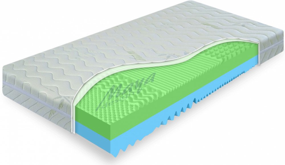 Matrace Laura je vyrobena ze dvou kvalitních studených HR pěn gramáží 37 a 40 kg/m3, což umožňuje volbu dvou tuhostí ležení. Patří k velmi oblíbeným. HR pěny jsou charakteristické otevřenými póry ve své struktuře, proto jsou odolné proti dynamickému namáhání. Vyznačují se dobrou elasticitou a poskytnou Vám komfort při ležení. Lehací plocha je rozdělena do pěti anatomických zón, které působí lehce masážním a relaxačním dojmem. Matraci standardně vyrábíme v potahu ALOE VERA prošitém 130 g polyesterovým rounem. Potah je snímatelný a pratelný na 60°C. Výška matrace v potahu je cca 17 cm.