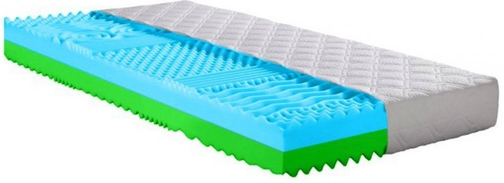 Vysoce luxusní sedvičová matrace výšky 17 cm. Konstrukce matrace se skládá ze značkových Německých pěn EuroFoam dosahujícich vlastností studené pěny. Uživatel může zvolit tvrdší anebo měkčí stranu matrace pouhým otočením matrace. Významným prvkem je ergonomické zonování matrace. Ložná plocha je profilovaná kombinací masážních nopků (jemné bodové promasíro...