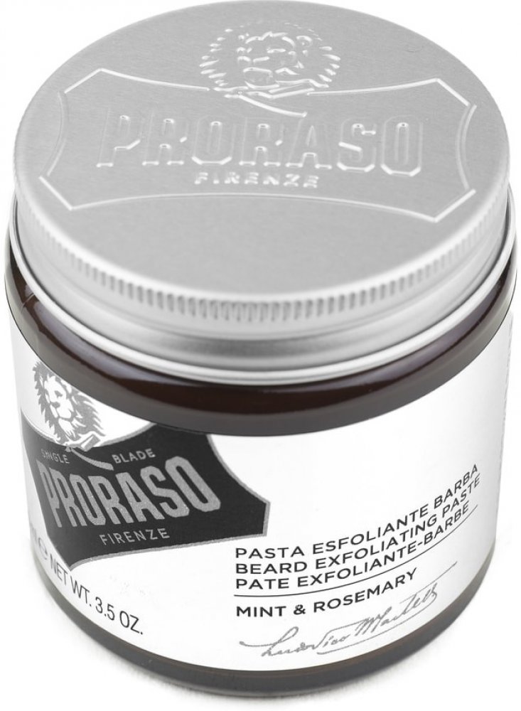Pasta, která vaši ctěnou tvář (hlavně tu část, která je zakrytá plnovousem) zbaví odumřelých buněk a nečistot. Pasta je ideální pro čištění celé pleti, pro odstranění odumřelých buněk pokožky, kterou tak dokonale vyčistí. Vyčištěná pleť lépe absorbuje další přípravky, nesvědí a neloupe se. Pasta má přírodní složení, italská provenience a uklidňující vůně máty a heřmánku.