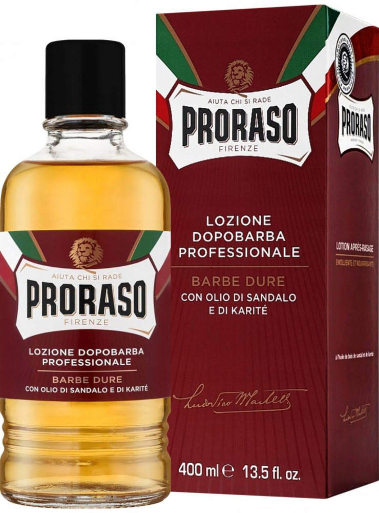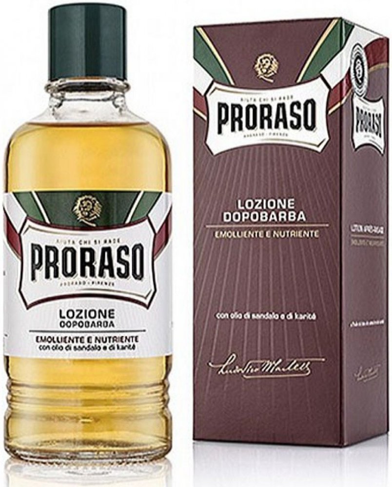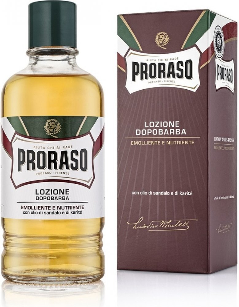 Proraso je synonymem mokrého holení. A taky nejstarší, nejznámější a téměř jistě i nejoblíbenější italský výrobce pánské kosmetiky - již od roku 1948. Ikonická je hlavně jejich univerzální zelená (eukalyptová) řada. Bílá řada obsahuje aloe vera a je vhodná pro citlivou pokožku, červená řada se santalovým dřevem zase pro husté a silné vousy. Speciální řady s vůni dřeva a koření, cypřiše a vetiveru a středozemního citrusu si pak tito Italové připravili pro vousáče.