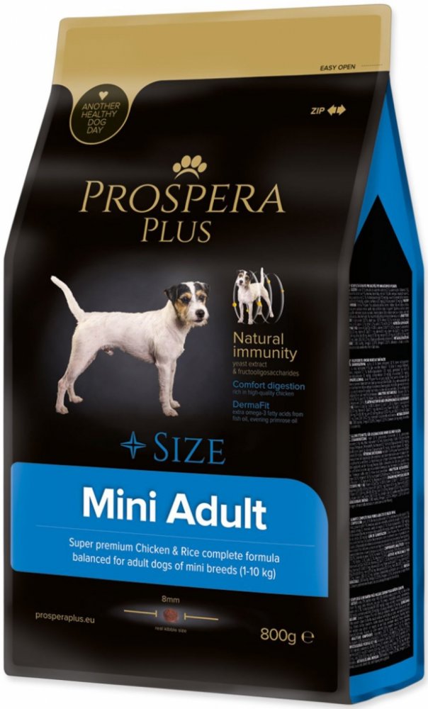 PROSPERA PLUS Mini Adult je superprémiové krmivo bohaté na vysoce kvalitní kuřecí maso, které zaručuje lepší trávení dospělých psů malých plemen. Ingredience obsažené v receptuře, fruktooligosacharidy a extrakt z kvasnic posilují imunitu Vašeho psa. Přírodní Omega 3 mastné kyseliny z rybího tuku společně s pupalkovým olejem přispívají ke krásné srsti a zdravé kůži.