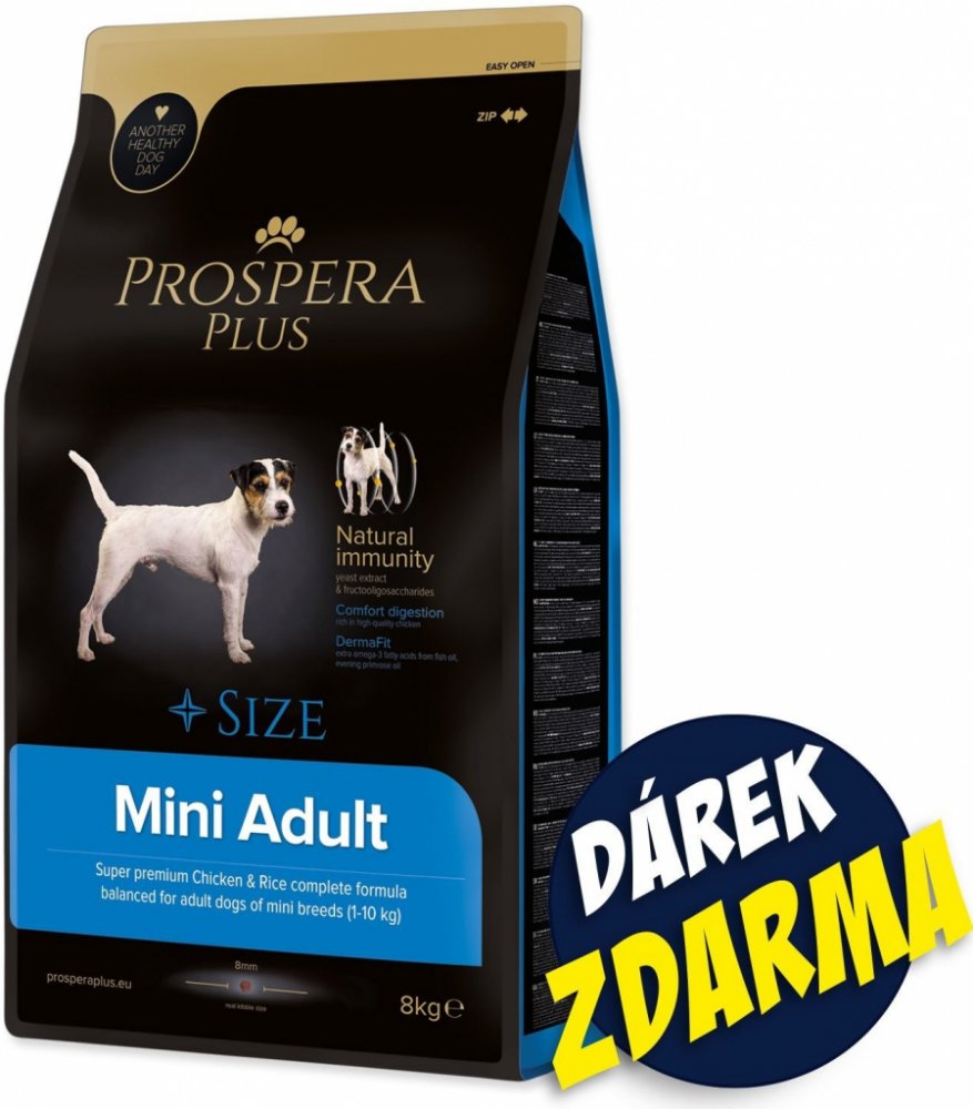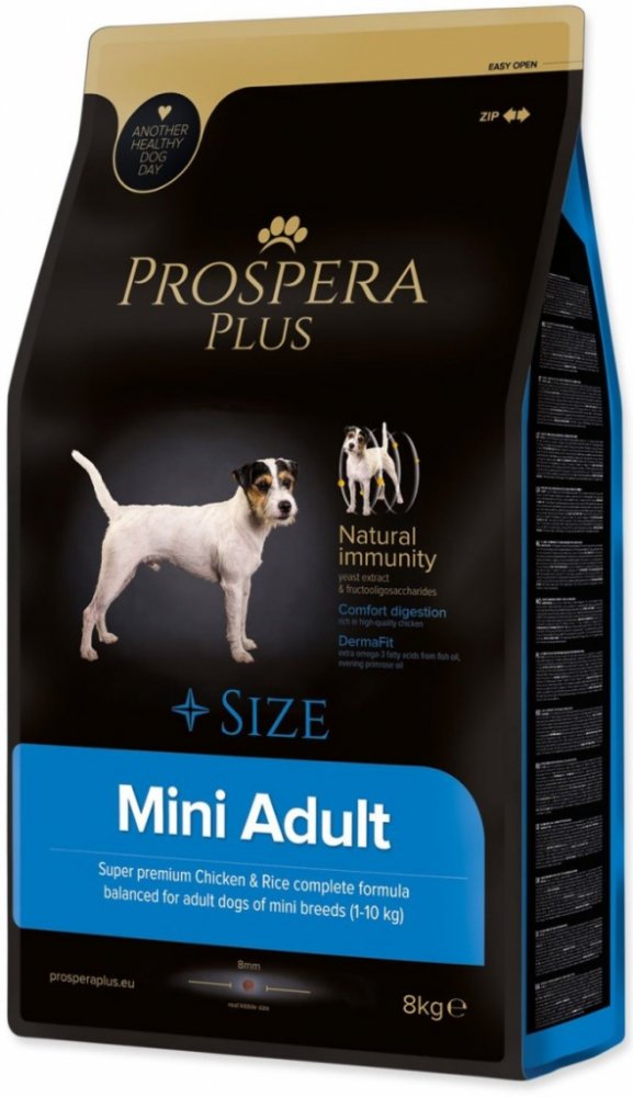 PROSPERA PLUS Mini Adult je superprémiové krmivo bohaté na vysoce kvalitní kuřecí maso, které zaručuje lepší trávení dospělých psů malých plemen. Ingredience obsažené v receptuře, fruktooligosacharidy a extrakt z kvasnic posilují imunitu Vašeho psa. Přírodní Omega 3 mastné kyseliny z rybího tuku společně s pupalkovým olejem přispívají ke krásné srsti a zdravé kůži.