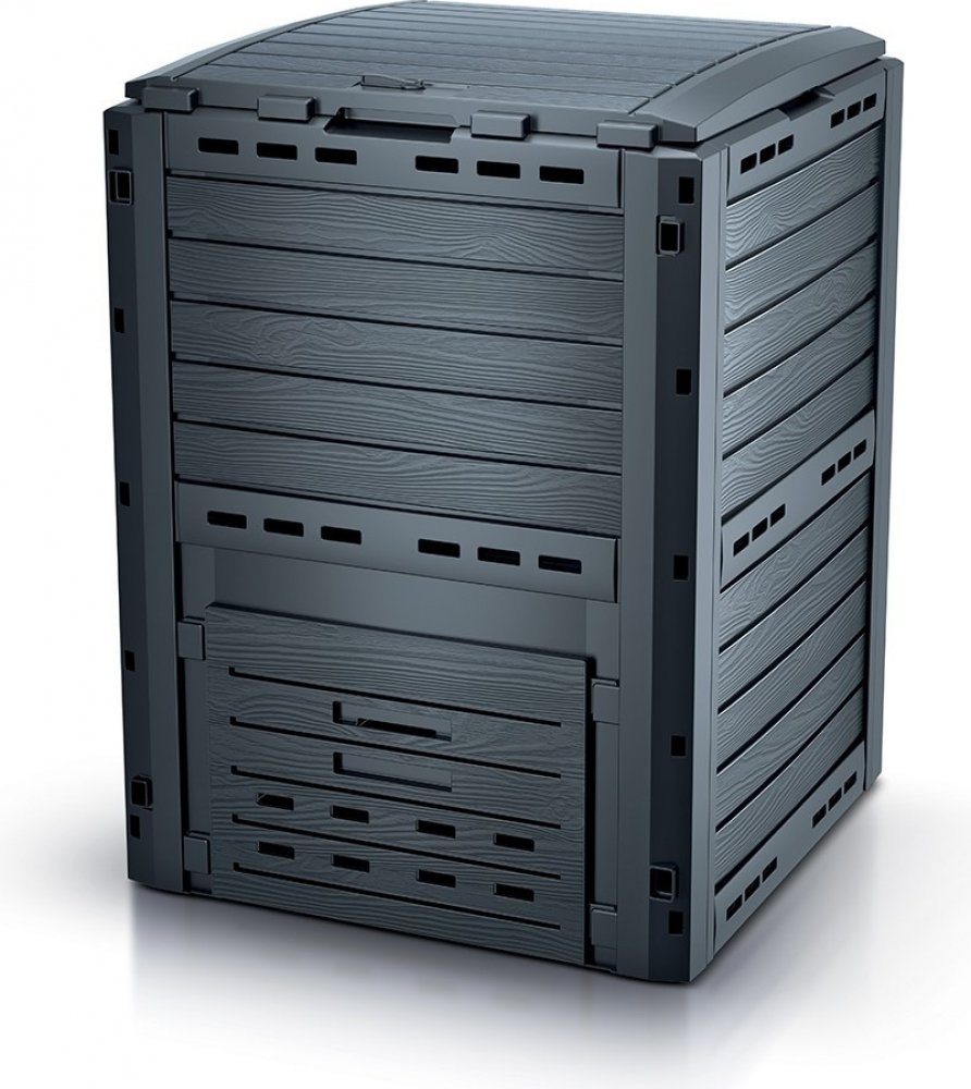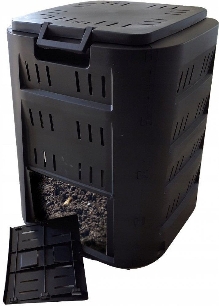 - Spodní revizní otvor se zásuvnými dvířky pro pohodlný přístup k hotovému kompostu.