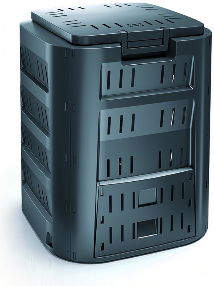 Kompostér je vyroben z modifikovaného polypropylenu, odolného vůči povětrnostním podmínkám.