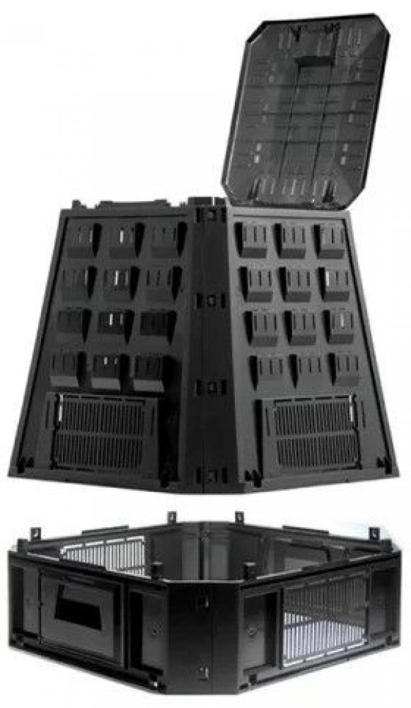 Kompostér je vyroben z modifikovaného polypropylenu, odolného vůči povětrnostním podmínkám.
