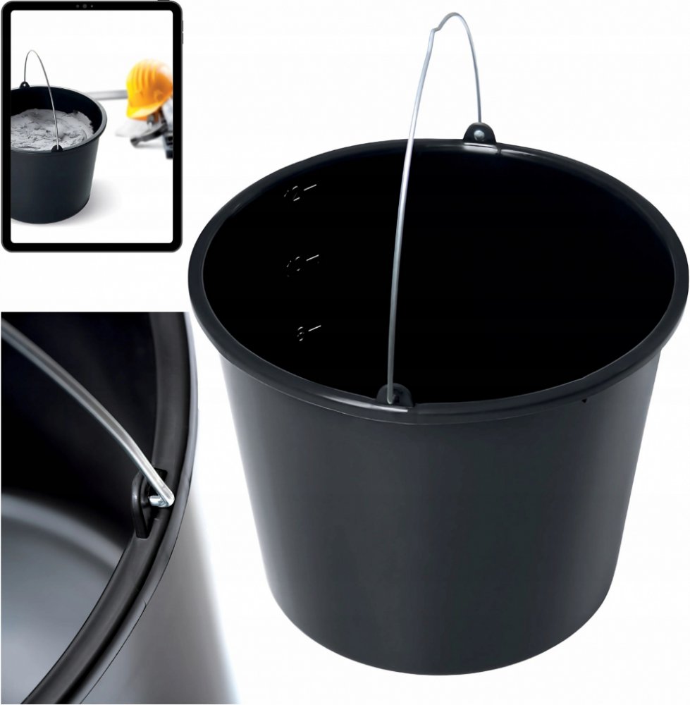 Max Vědro stavební černé 12lVědro 12L polyethylenové, je vhodné pro přesun betonu, malty, písku a nebo také kapaliny, ale i na Vaší zahrádce, může sloužit k pěstování plodin a nebo k zalévání.