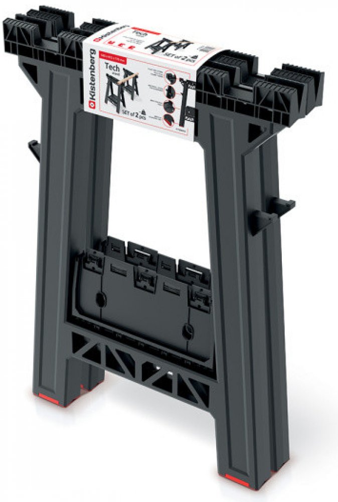Podstavec stavební plastový TECH STAND, s poličkou, 175 kg, 2 ks - KISTENBERGStavební plastový podstavec/koza TECH STAND s integrovanou poličkou na nářadí představuje inovativní a všestranný nástroj s nosností až 175 kg je praktickým pomocníkem pro práci na stavbě, v dílně nebo domácnosti. Sada obsahuje 2 kusy sklopných podstavců, které jsou vybaveny integrovanou poličkou pro uložení nářadí a spot...