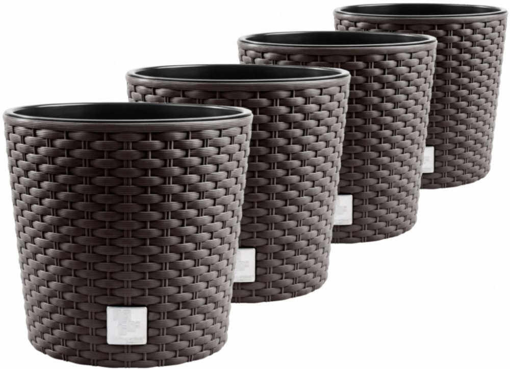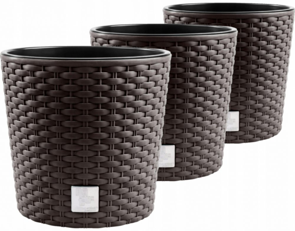 Vysoké, štíhlé květináče s velmi moderním designem a texturou věrně imitující výplet z přírodního ratanu. Umožňují vytvářet krásné jedinečné interiéry a bez omezení uspořádat prostor kolem domu. Vyrobeno z vysoce kvalitního plastu, odolného vůči povětrnostním vlivům a UV záření. Výrobek určený pro vnitřní i venkovní použitíw.Zestaw obsahuje: