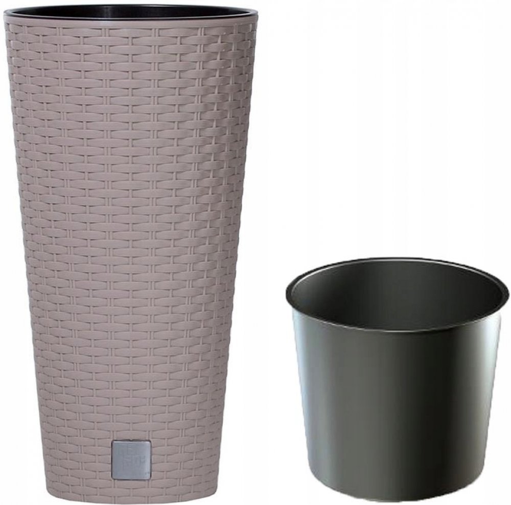 - Vysoký, štíhlý květináč z kolekce Rato s texturou připomínající výplet z přírodního ratanu. Funkční, s teplým, exotickým charakterem, je dokonalým doplňkem stylové výzdoby interiérů, uspořádání teras, verandy, zimních zahrad, restauračních, barových a kavárenských zahrad. V sadě s květináčem je vložka.