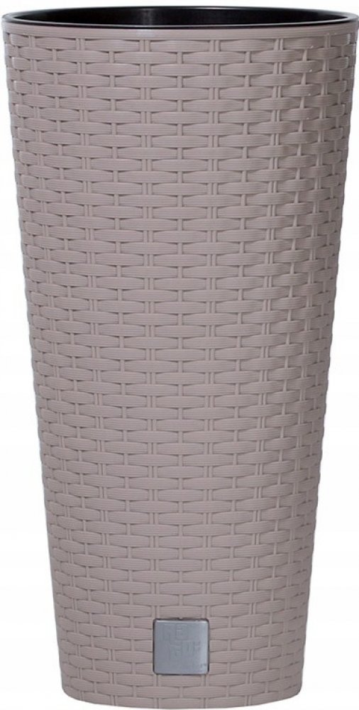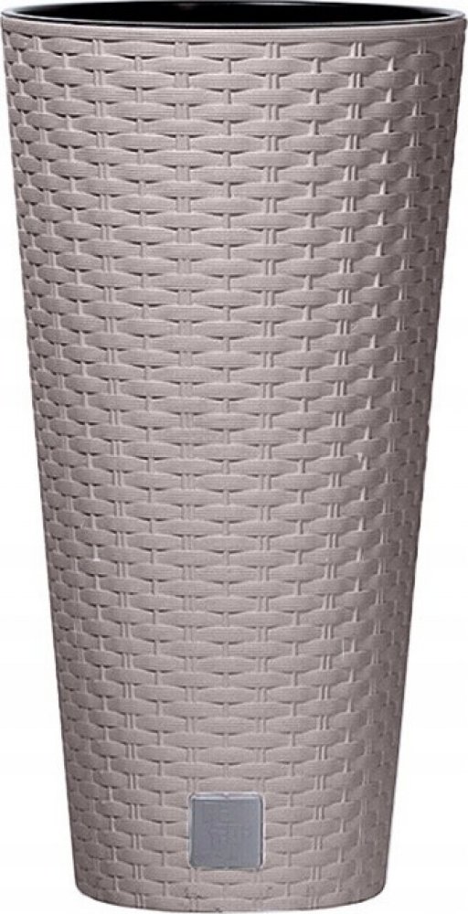 - Vysoký plastový květináč vyrobený po vzoru ratanu