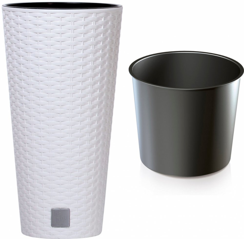 Vysoký, štíhlý květináč z kolekce Rato s texturou věrně imitující výplet z přírodního ratanu. Funkční, s teplým, exotickým charakterem, je vynikajícím doplňkem stylové dekorace interiéru, uspořádání teras, verandy, zimních zahrad, restauračních, barových zahrad a kawiarnianych.W sady kazet.