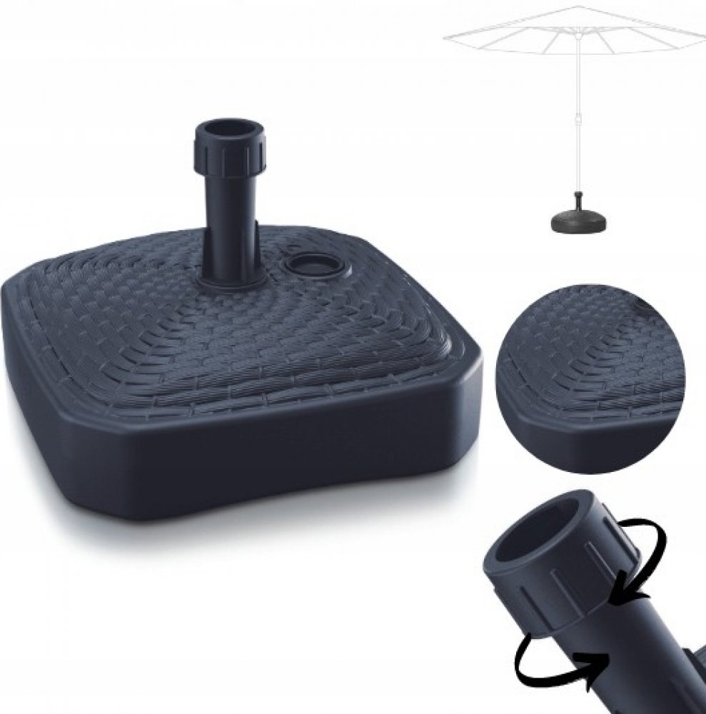 Zahradní slunečník vás při venkovním posezení ochrání před přímým sluncem i občasnou přeháňkou. Aby vás nezaskočily ani poryvy větru, pořiďte si k němu i stabilní základnu v podobě tohoto podstavce.