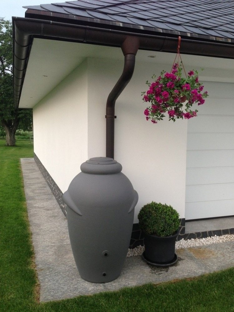 Dekorativní nádoba na vodu o objemu 360 litrů. Vyrobeno z pevného plastu odolného vůči venkovním teplotám. Design připomíná keramickou nádobu tvaru amfory.