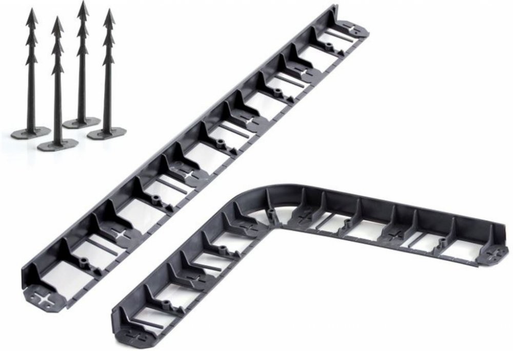 - Jednoduché kotvení obrubníku, pomocí hřebů, které jsou součástí balení