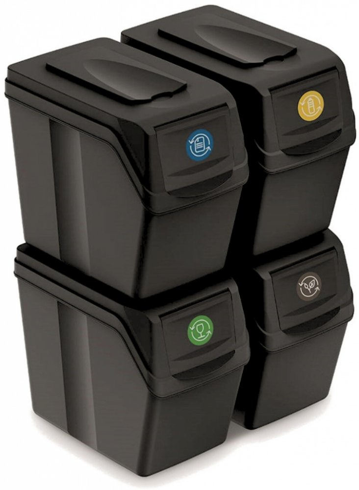 Prosperplast Odpadkové koše na tříděný odpad, 4 ks x 20 l SORTIBOX SLIM - černé