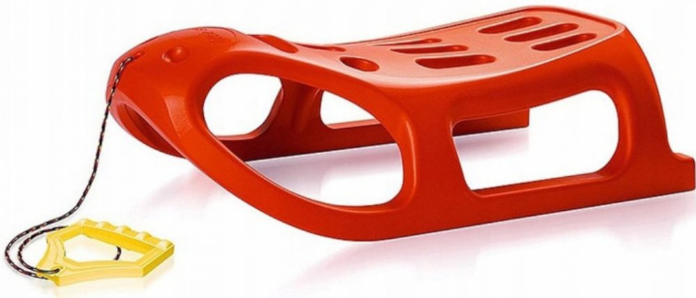 Plastové sáňky, nosnost až 50 kg, ocelové skluznice, odolné teplotám do - 18 °C, lano pro snadnou manipulaci, kompaktní rozměry. Materiál plast a kov, barva červená.