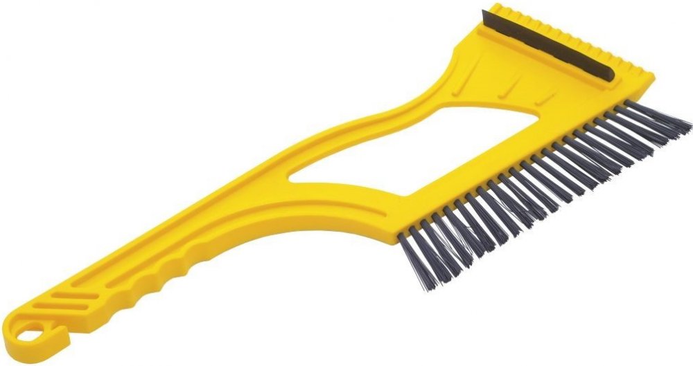 Speciální ozubení na rozích škrabky lze snadno narušit i silnou vrstvu ledu