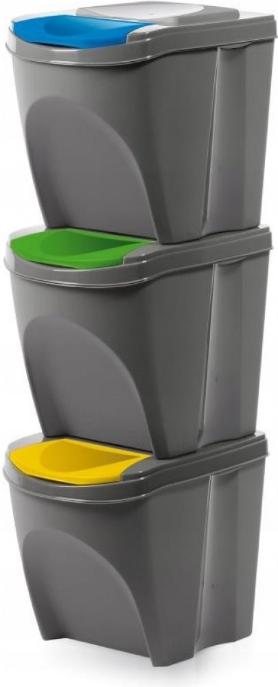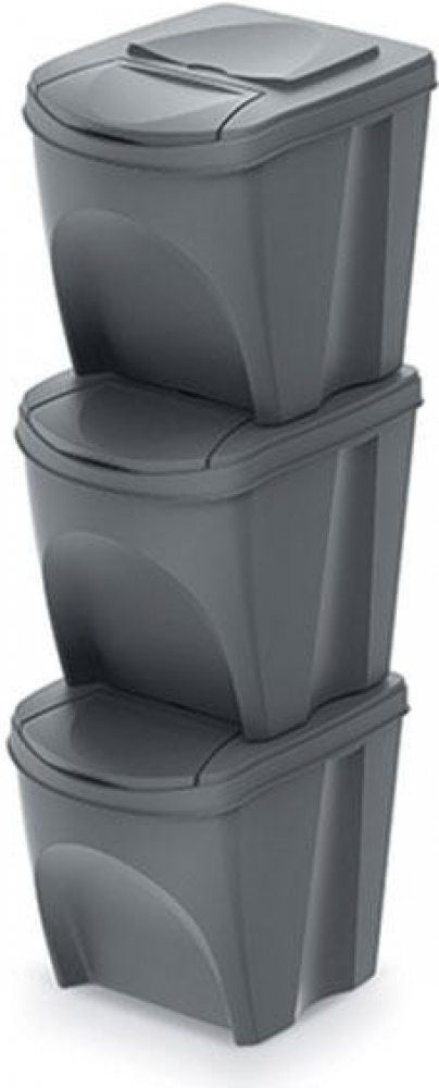 šedé plast Prosperplast klasické koše 3 s ručním otevíráním 39.2 cm 2.8 kg 75.0 l 29.3 cm 33.5 cm