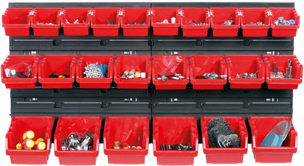 PROSPERPLAST Závěsný panel s 28 boxy na nářadí ORDERLINE 800 x 165 x 400 mm