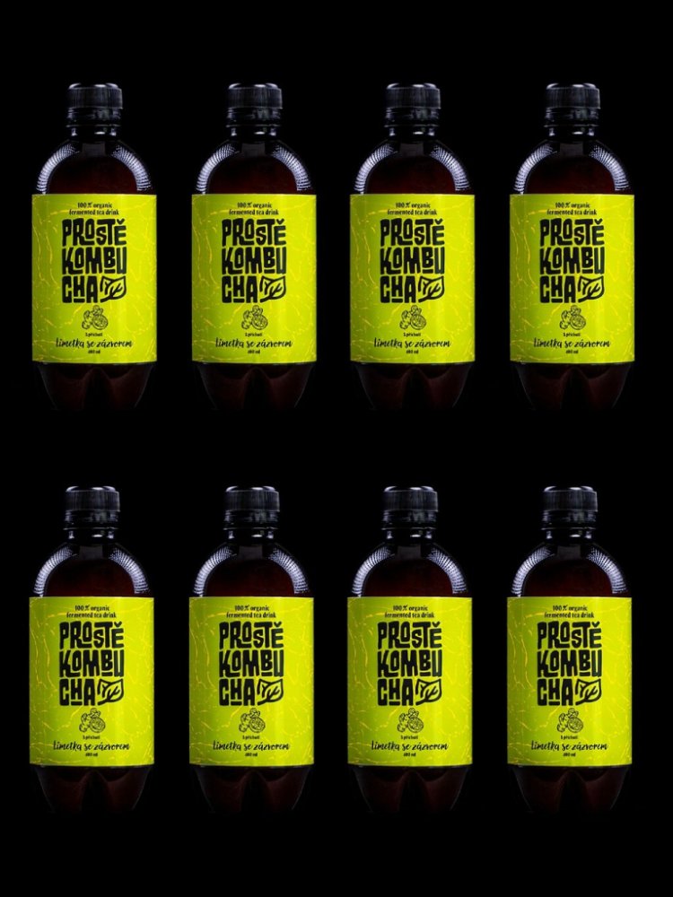 Prostě Kombucha BIO Zelený čaj s příchutí limetky se zázvorem 8 x 400 ml