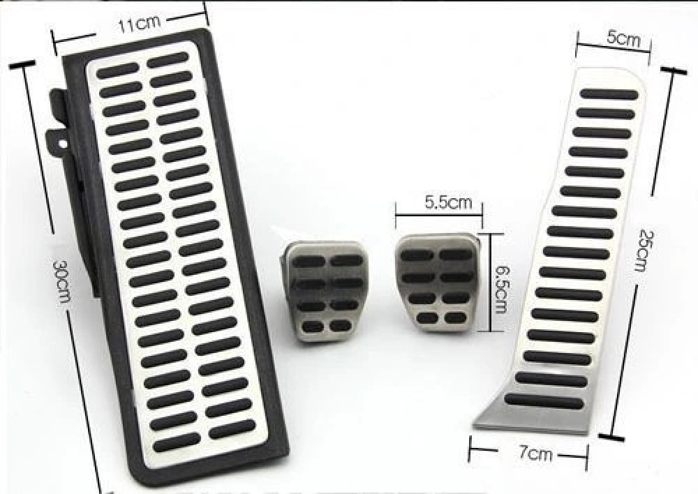 RS sportovní pedály VW PASSAT B6 2005–2010 3C manuální.Vyrobeno z nerez oceli.Určeno pro vozy s manuální převodovkou.Sada 4 kusů krytů pedálů.Montáž se provádí nasazením na místo původních obyčejných pryžových krytů pedálů.