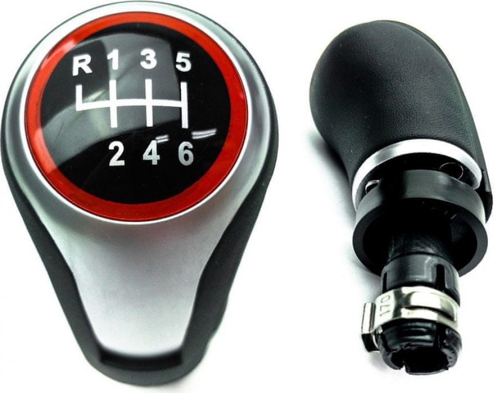 Hlavice řadící páky Škoda Superb III 2015– 6ST. Hlavice je určena pro 6st. převodovky. Otvor pro řadící tyč je 12mm. Zpátečka v levo nahoře.