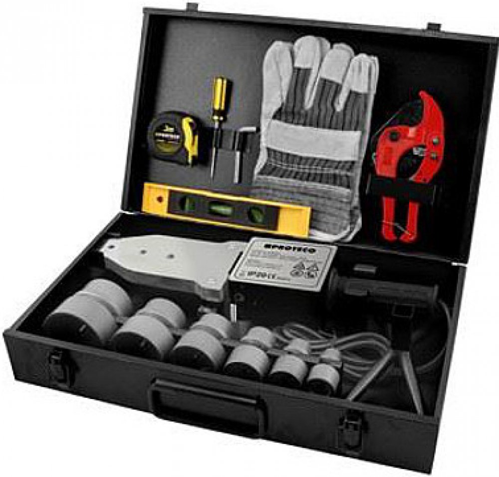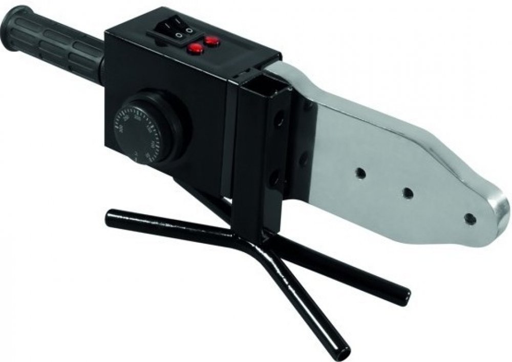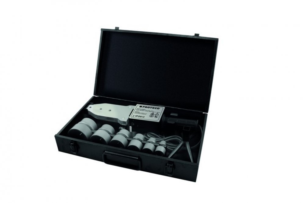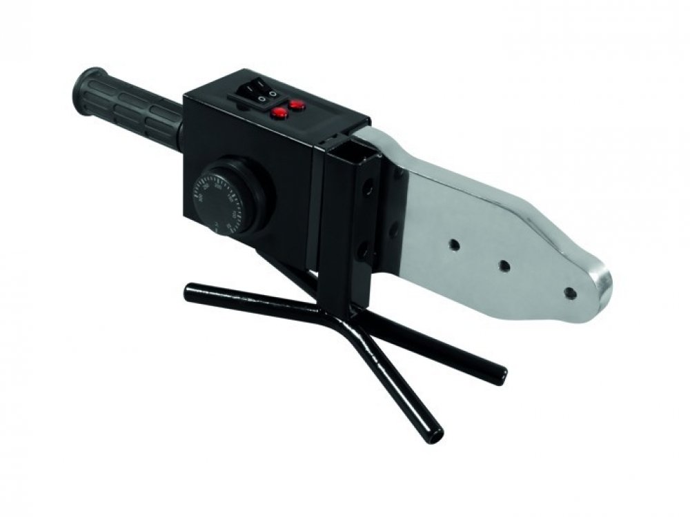 Polyfúzní svářečku 800/1500W s podstavcem a nástavci. Polyfúzní svářečka je určena ke svařování trubek a tvarovek o průměru 20, 25,32,40,50 a 63 mm zhotovených z termoplastických materiálů PPR, PB a PE.