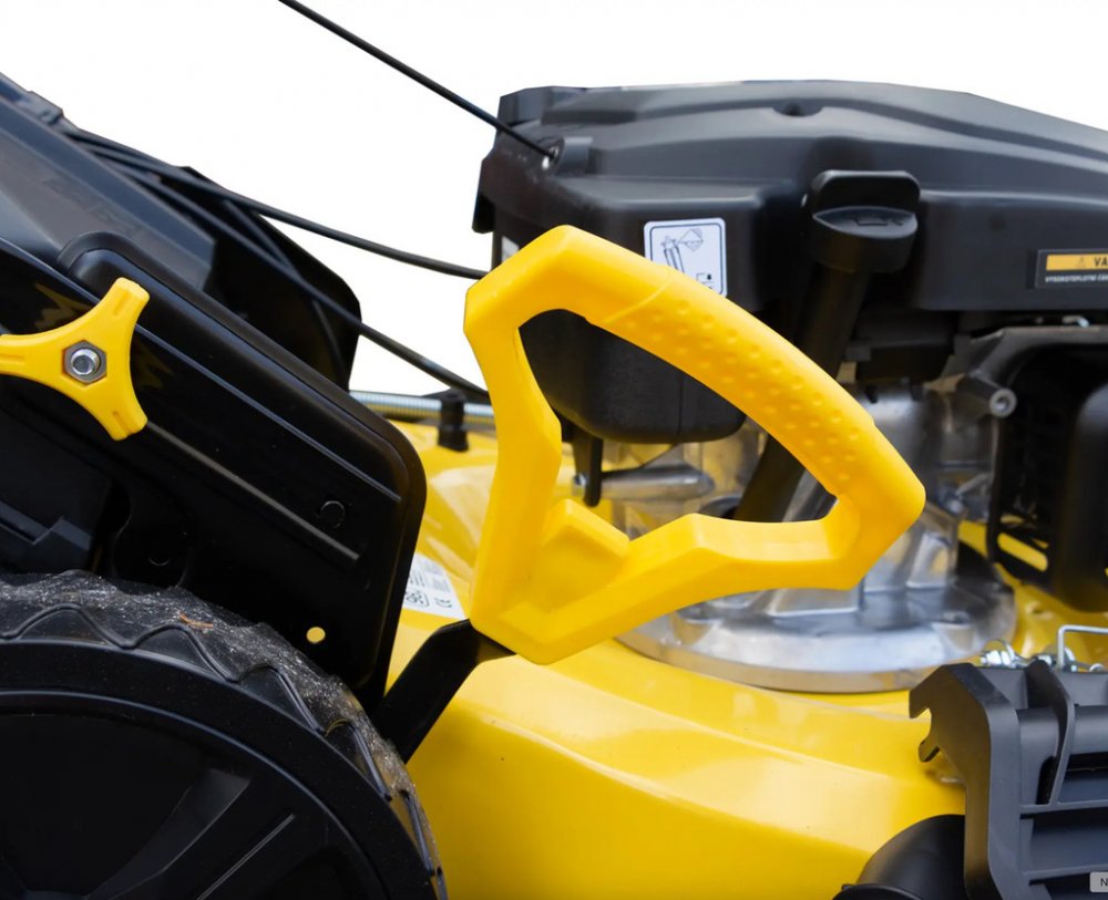 s pojezdem; nastavení rychlosti otáček; záběr 53 cm; objem motoru 196 cm3; výkon 4,0 kW; ocelová konstrukce; 8 pozic nastavení výšky sečení (25-75 mm); sběrný koš 62 l; motor OHV; hmotnost 33,8 kg