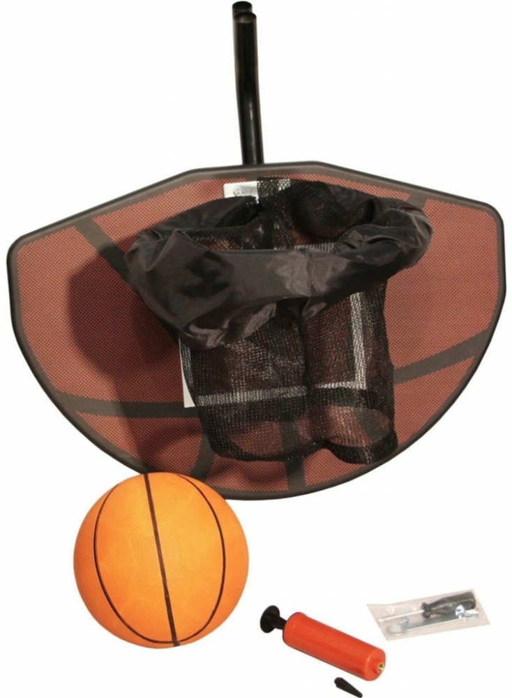 Položku máme SKLADEM. Basketbalový koš pro trampolíny Proteco, upevnění ke kovové konstrukci trampolíny. - Rozměr produktu (š x v): 80 x 40 cm - Materiál: plast Balení obsahuje: - basketbalový míč, pumpičku, basketbalový koš, desku, montážní sadu