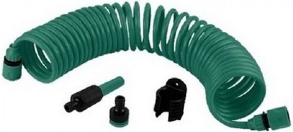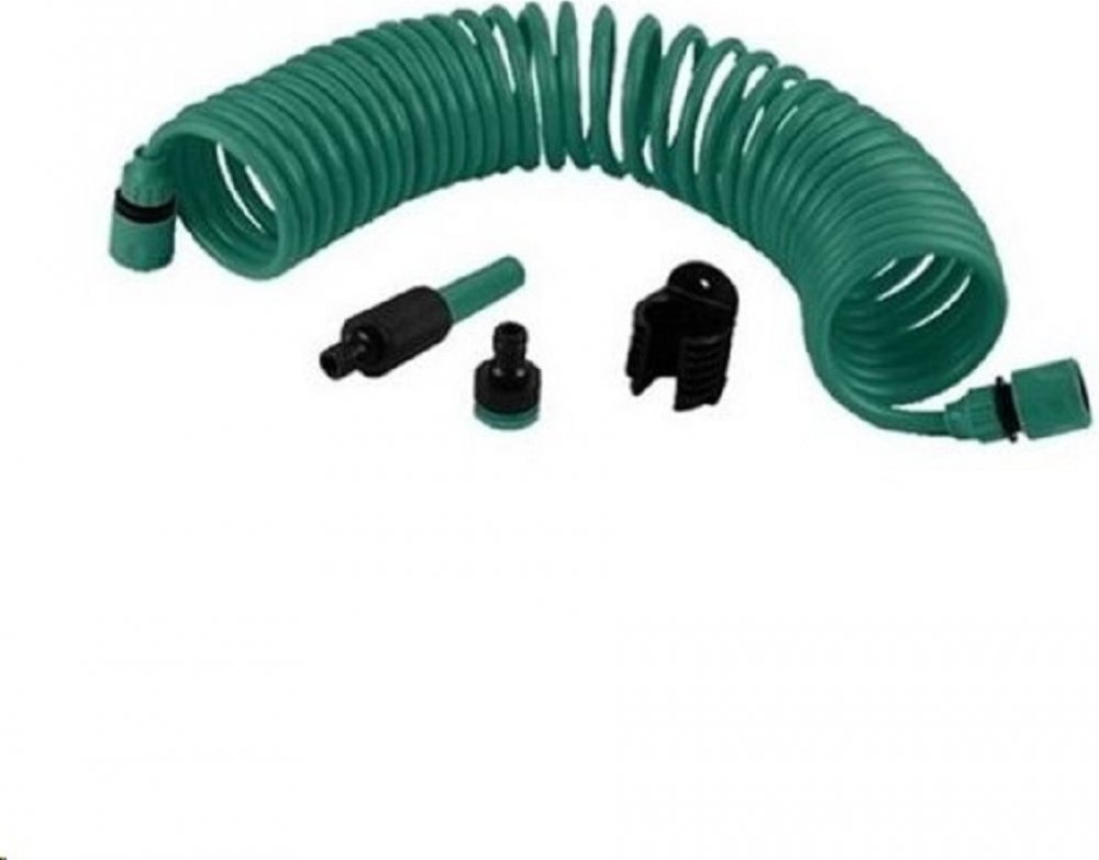 Spirálová zahradní hadice pro rozvod vody po Vaší zahradě Spirálová polyuretanová hadice s kompletní výbavou. Hadici není třeba navíjet, šetří Váš čas, a je šetrná k rostlinám. Délka: 10 m Vnitřní průměr hadice je 8 mm Venkovní průměr hadice je 10mm V balení obsaženo i příslušenství - tryska, držák, adaptér