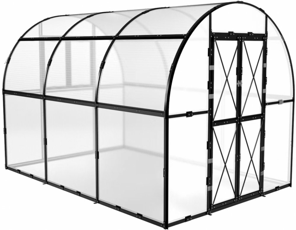 Proteco 6.4 m2 2.05 m 3.1 m 2.05 m 80 kg obloukové ocelové černé dvoukřídlé polykarbonát 4.5 mm