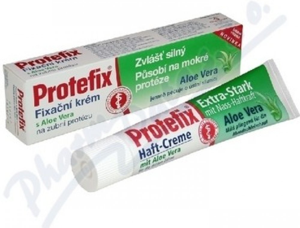 Zubní náhradu důkladně očistěte a na mokrou zubní protézu naneste Extra silný fixační krém Protefix (do jamky horní nebo dolní zubní protézy, která se nachází vedle čelisti). Fixační krém Protefix se nanáší přímo na mokrou protézu, působí okamžitě. Používejte 1x denně.